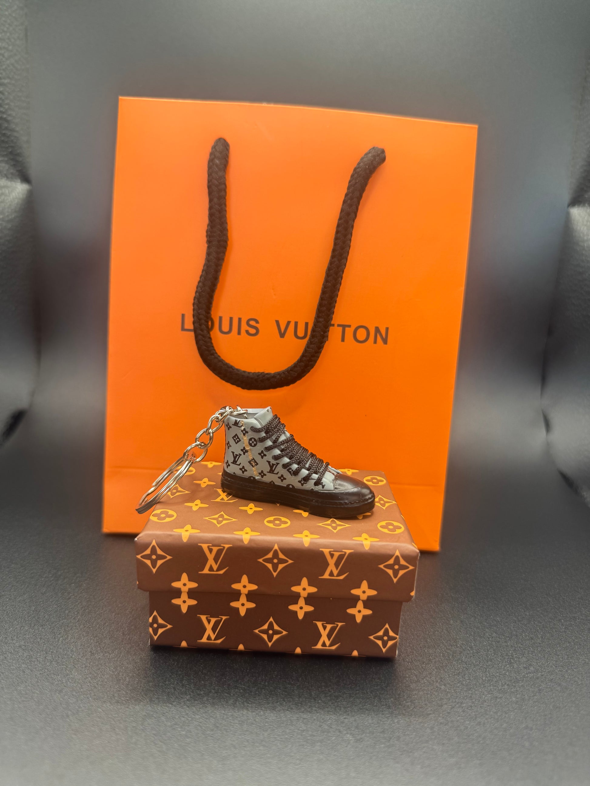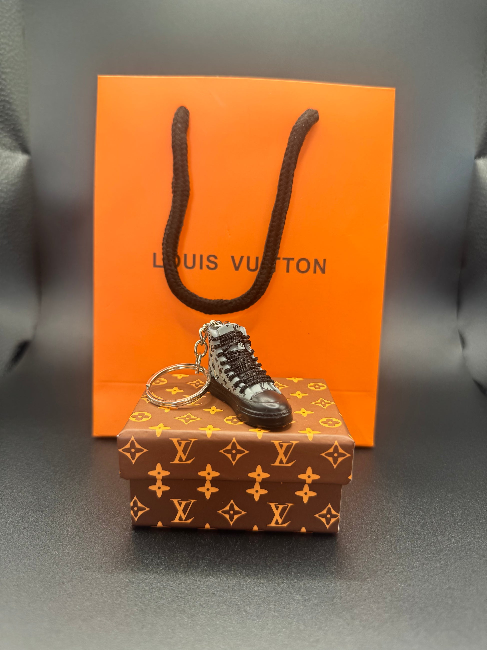 Luxus Miniatur-Sneaker Schlüsselanhänger – Grau/Schwarz – Mit Geschenkbox