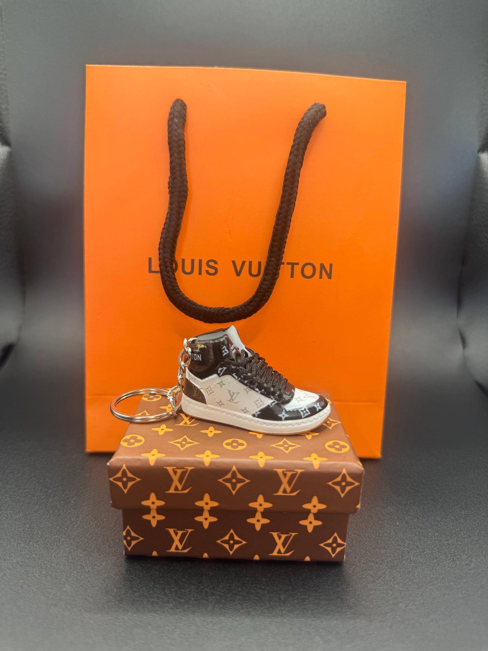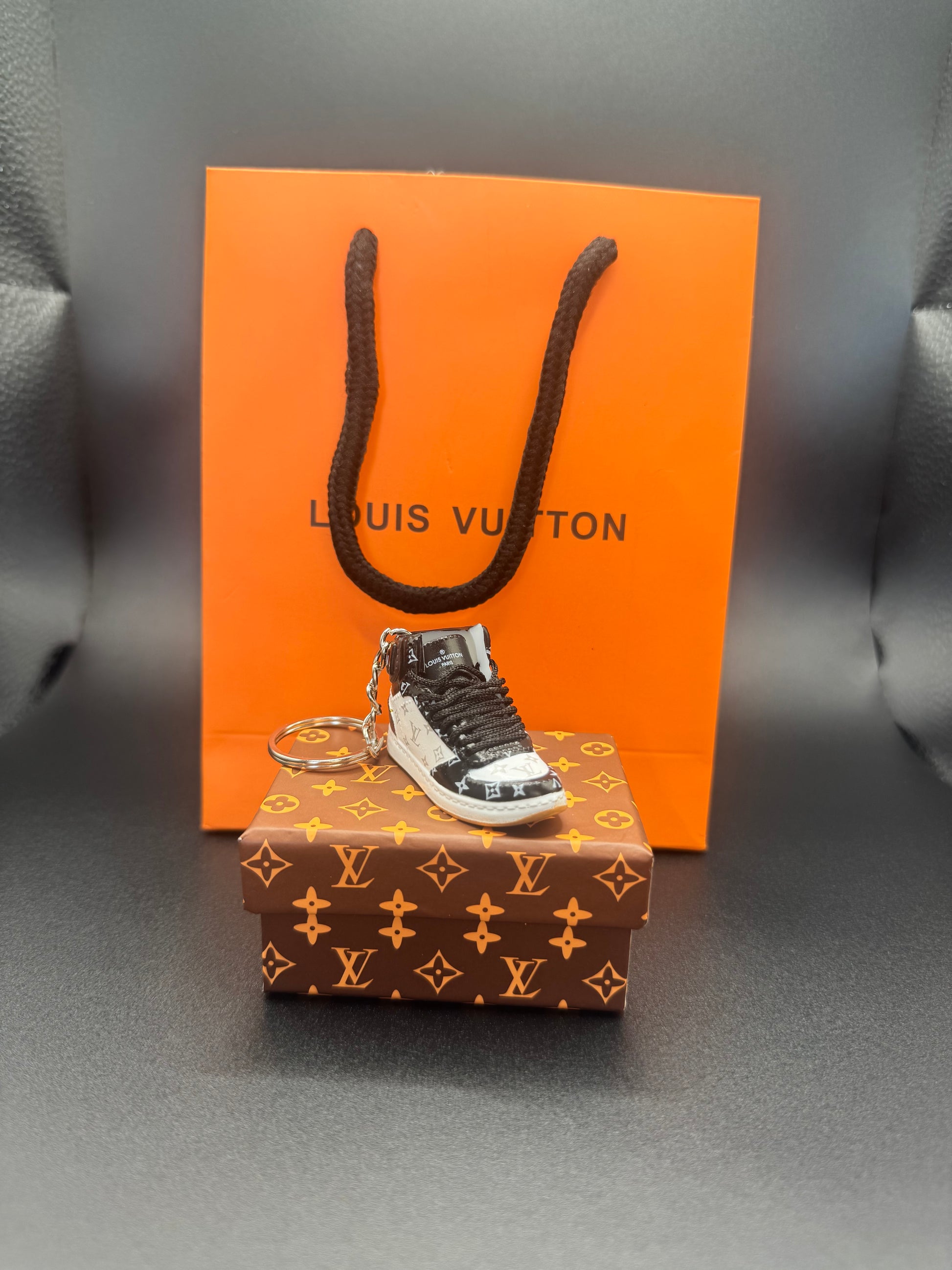 Bringe deinen Stil auf das nächste Level mit diesem luxuriösen Miniatur-Sneaker-Schlüsselanhänger im Schwarz/Weiß-Design.