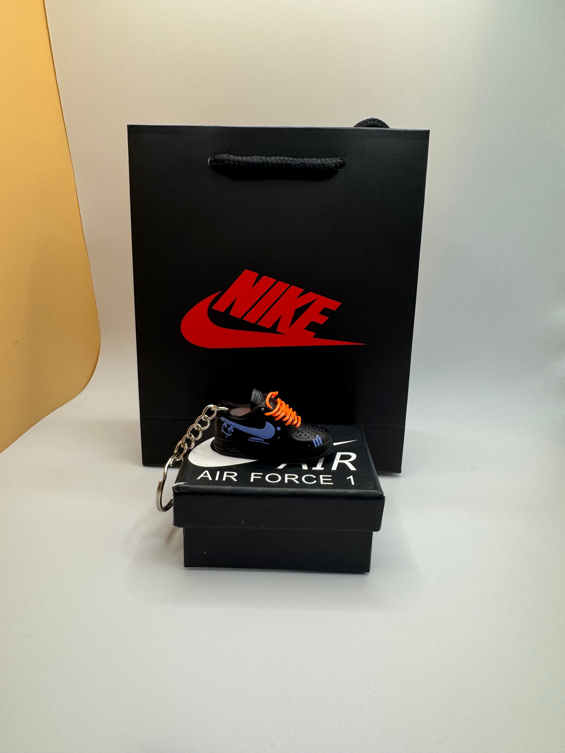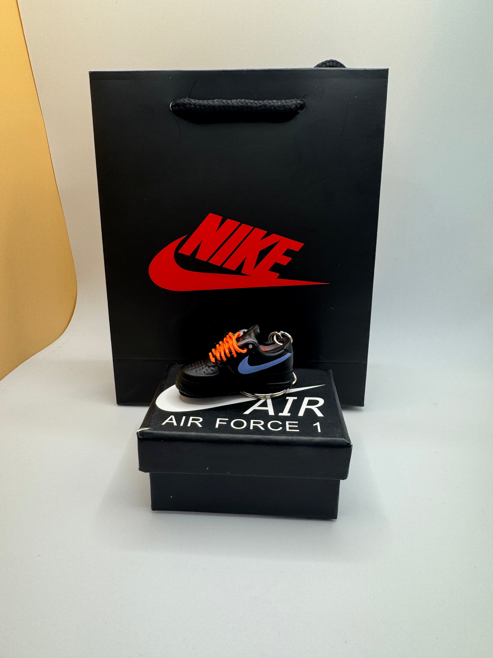 Nike Air Force 1 Schlüsselanhänger – Schwarz/Blau mit Orange Schnürsenkeln – Sneaker Miniatur