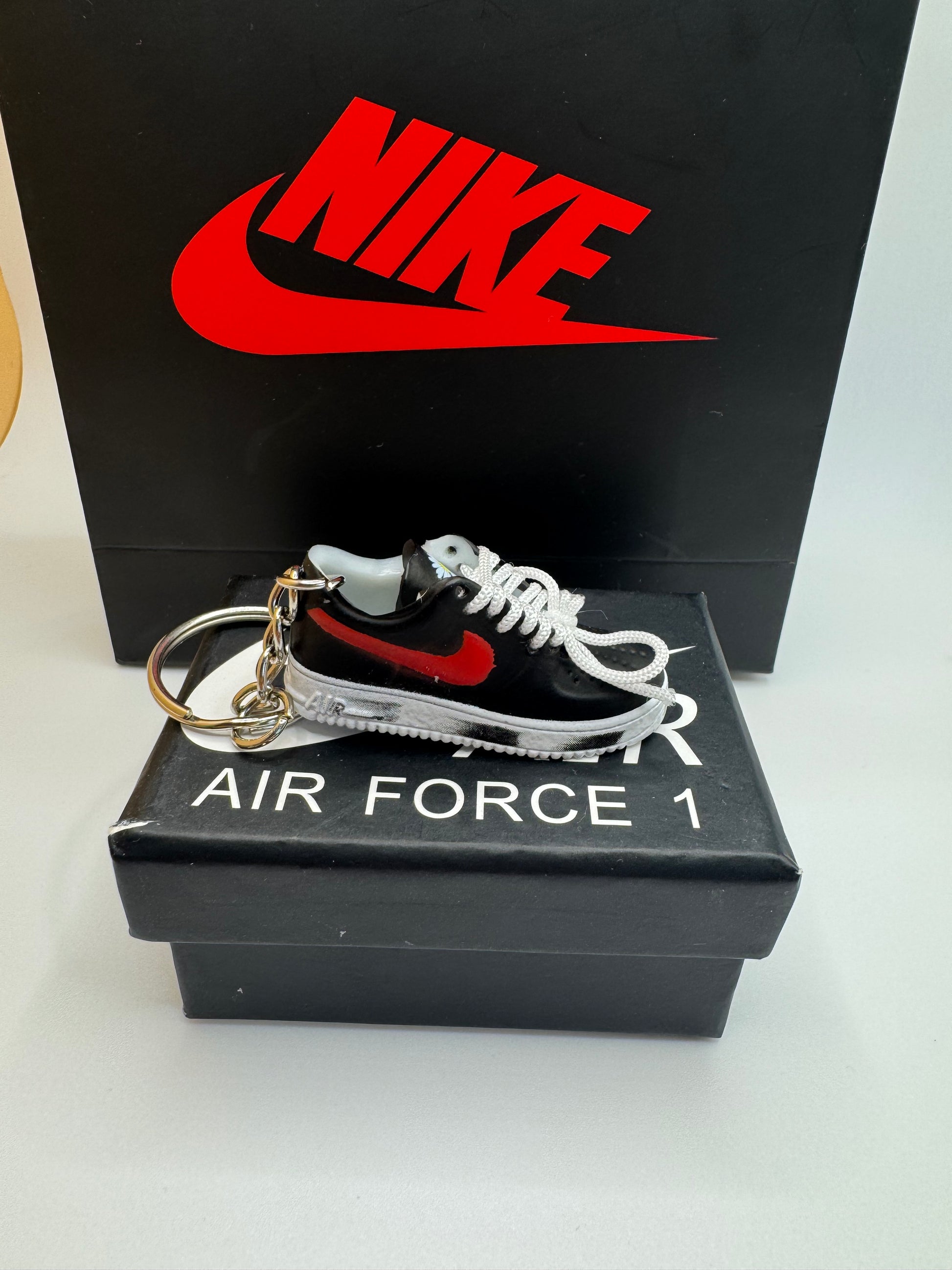 Nike Air Force 1 Schlüsselanhänger – Sneaker Miniatur in Schwarz/Rot mit Daisy Detail